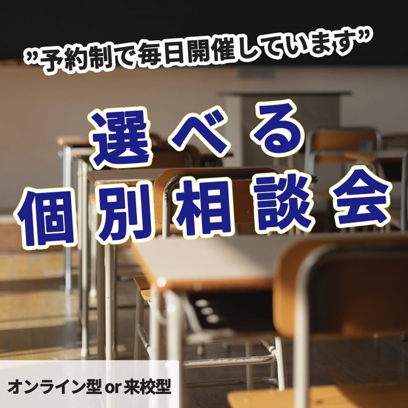 入試のこと、学校生活のこと、クラブ活動のことなど、気になることを自由に何でも相談できる 「選べる個別相談会」 を毎日実施しています。