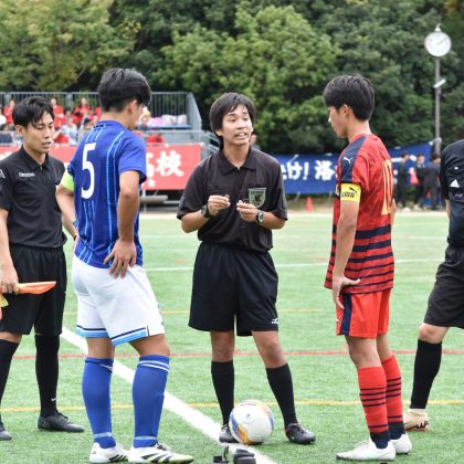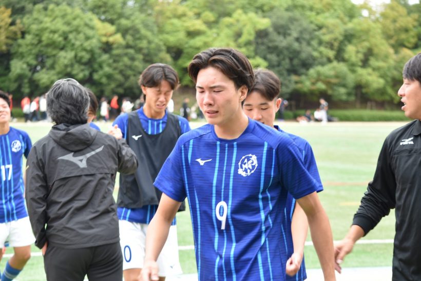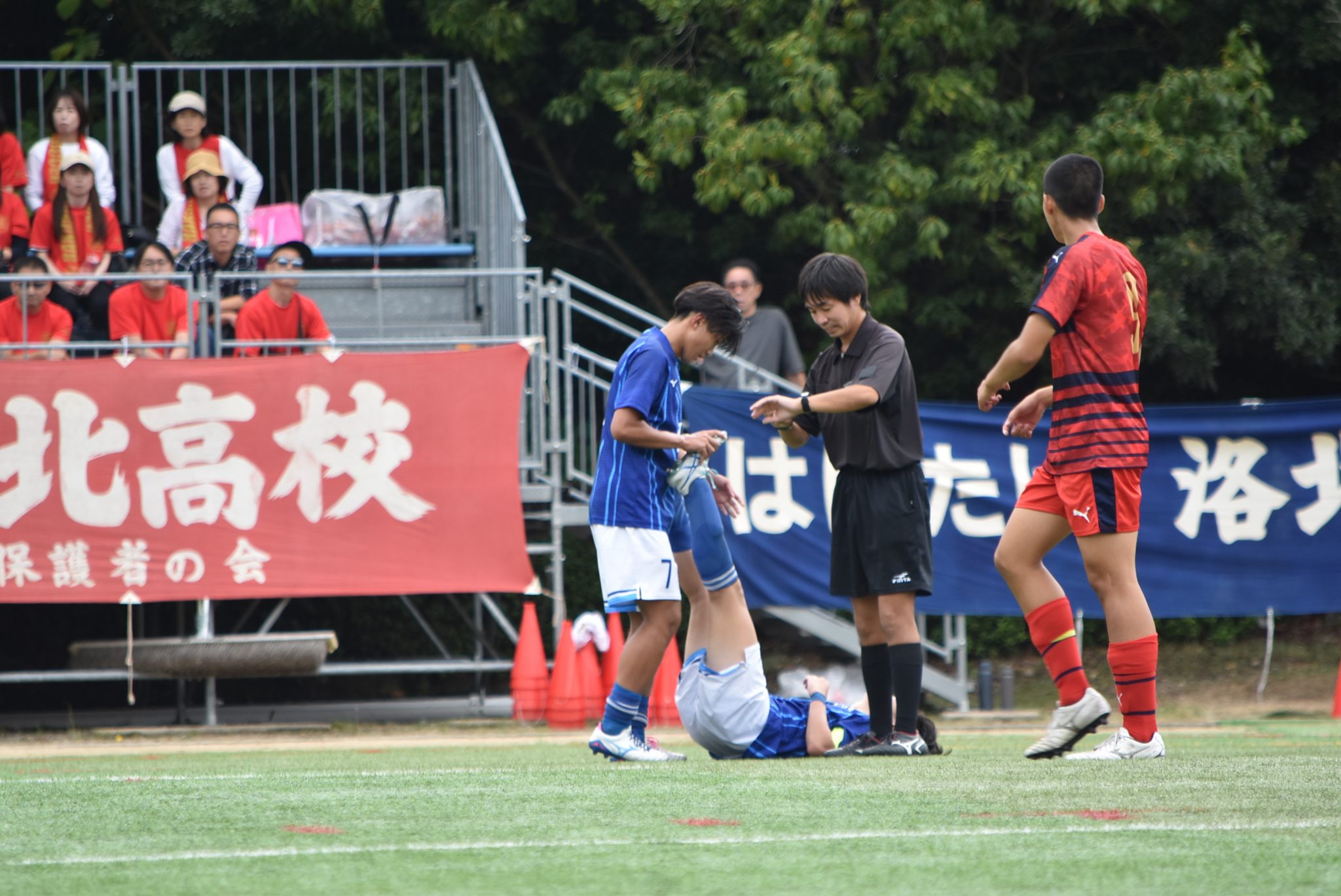 対戦相手は強豪・洛北高校。序盤から相手の激しい攻撃を受けましたが、全員が体を張って守り抜き、前半を0-0で折り返します。