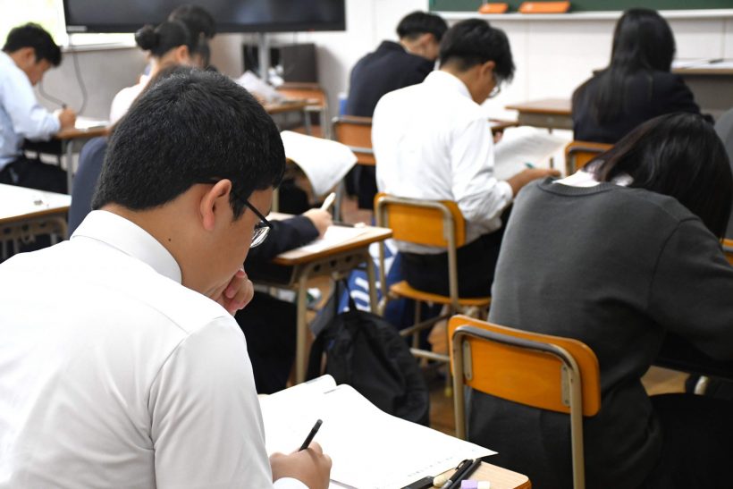 生徒たちはそれぞれの級に分かれて受験し、緊張しながらも真剣な表情で問題に取り組んでいました。