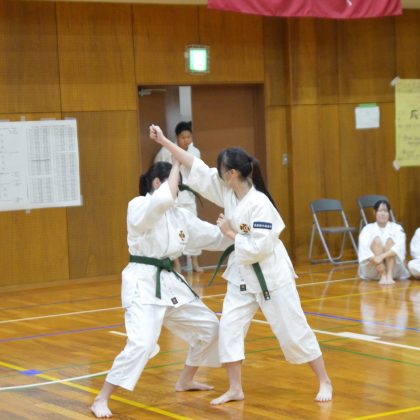 楽しみながらも真剣に演武に取り組む姿、そして一組の演武が終わるごとに自然と拍手を送る生徒たちの姿が、とても印象的でした。