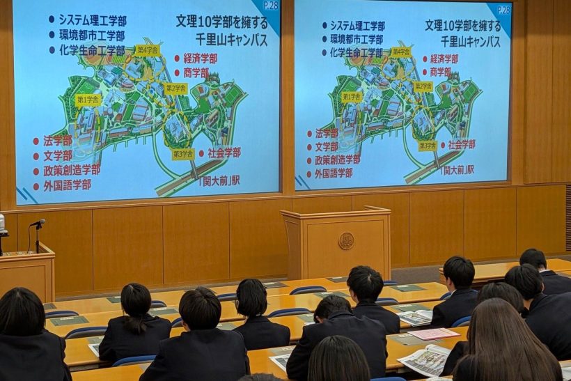 昨日、1・2年生のアドバンスコースの生徒たちが大学見学で、1年生は近畿大学へ、2年生は関西大学へ行きました。