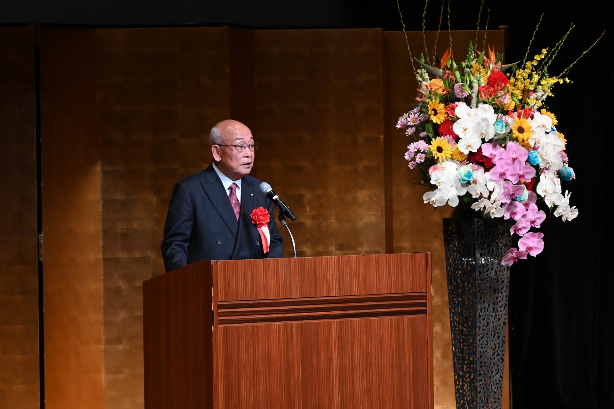 第1部の記念式典では、理事長式辞、来賓祝辞、そして学園の歩みを振り返る動画の上映などを行いました。