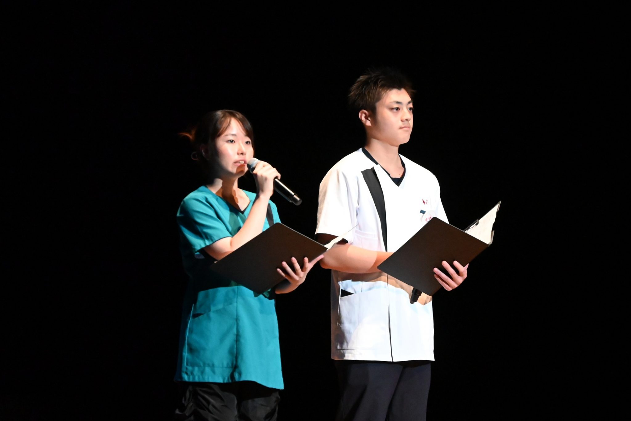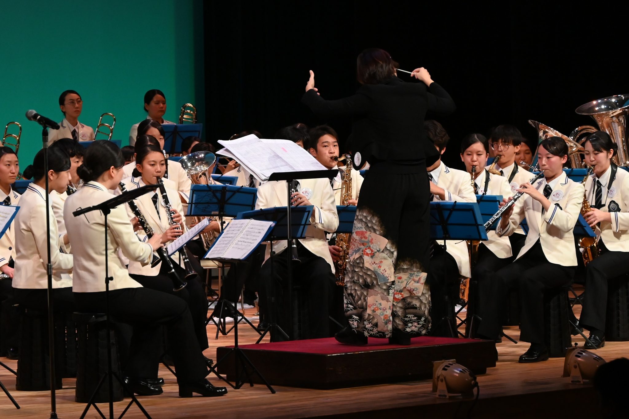 少林寺拳法部の生徒などによる演武、ダンス部のパフォーマンス、吹奏楽部「Blue Lilies」の演奏に加え、本校やグループ校(京都福祉専門学校・京都動物専門学校)の紹介など、多彩なプログラムで会場を盛り上げました。