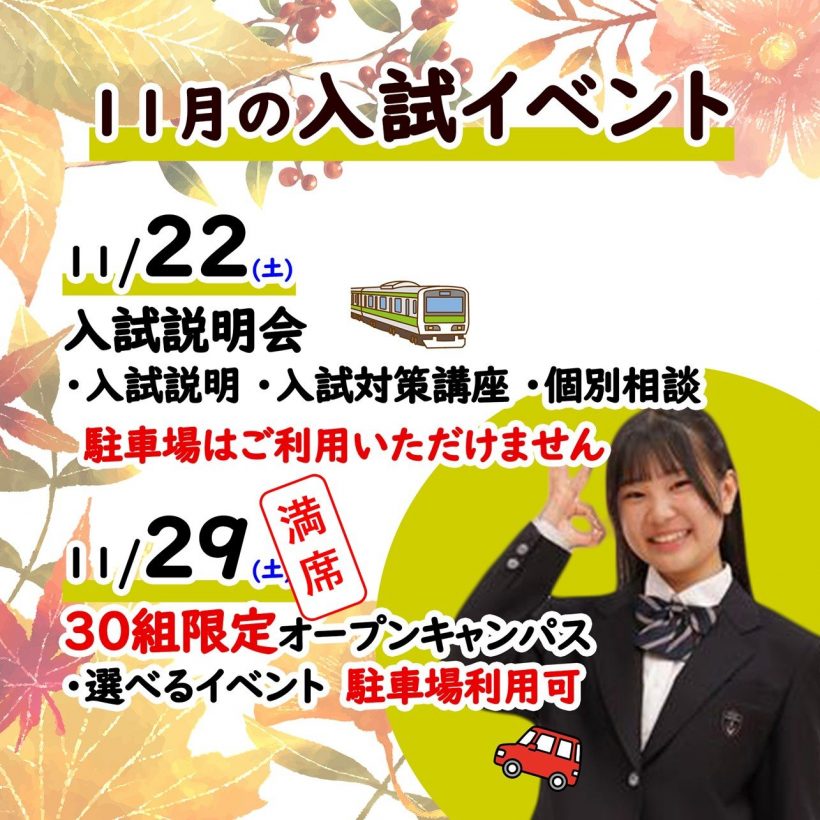 なお、11月22日(土)、12月13日(土)の入試説明会はまだ受付中!
