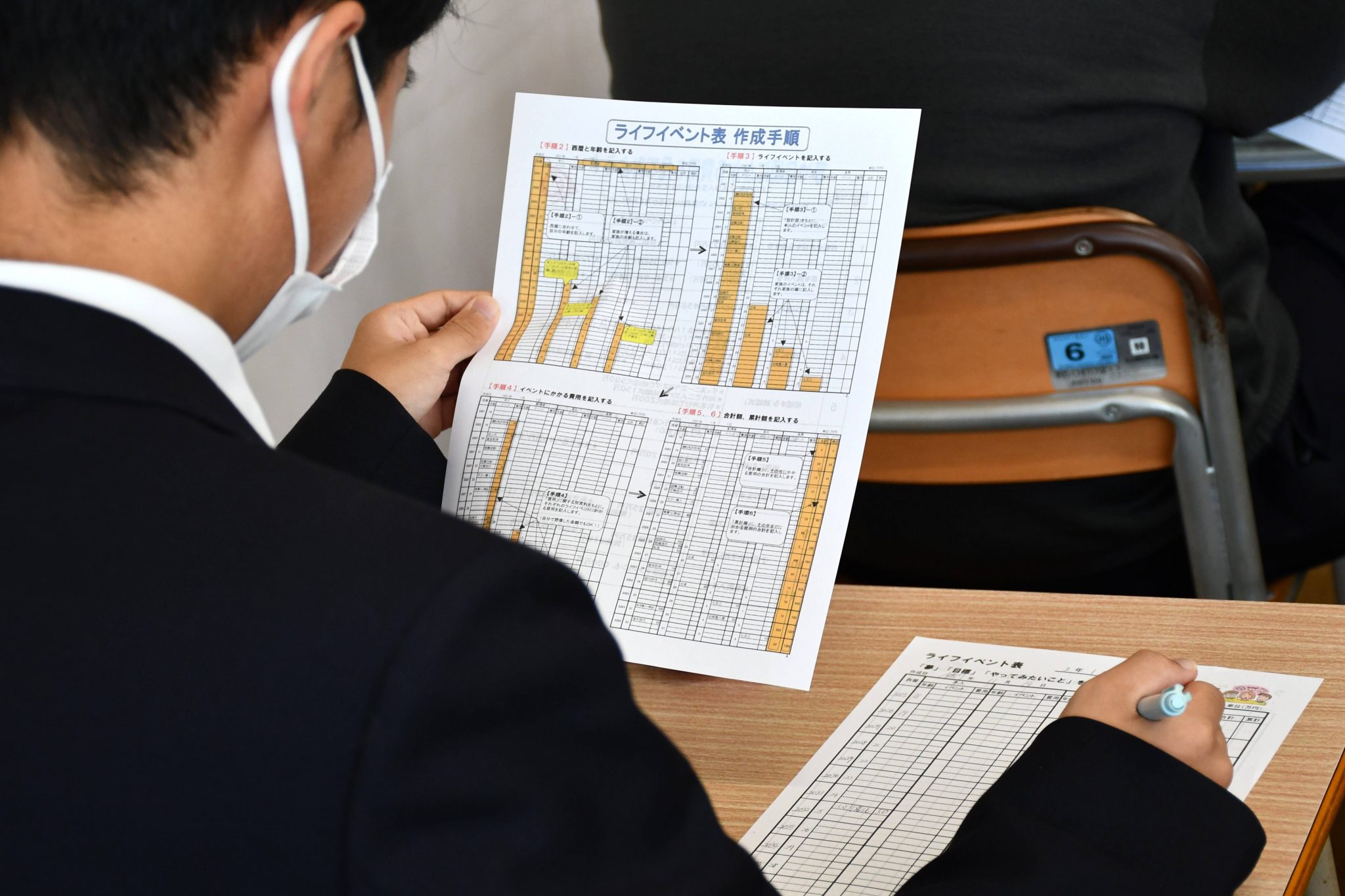 本日1限の3年生のLHRでは、「ライフプラン」について考えました。