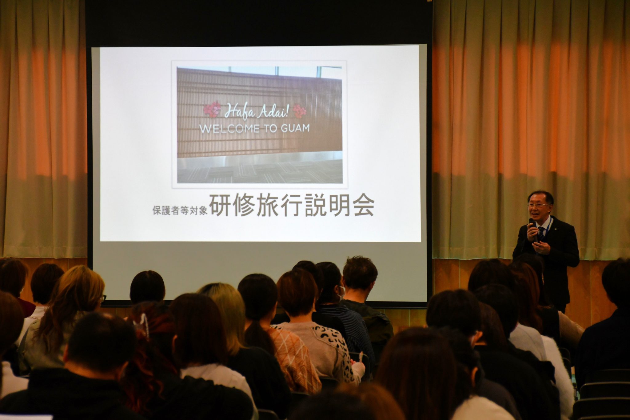 さらに、今回の旅行をサポートしていただく近畿日本ツーリスト株式会社の担当者から、グアムの気候、服装、持ち物、パスポートなどについて具体的にお話しいただきました。