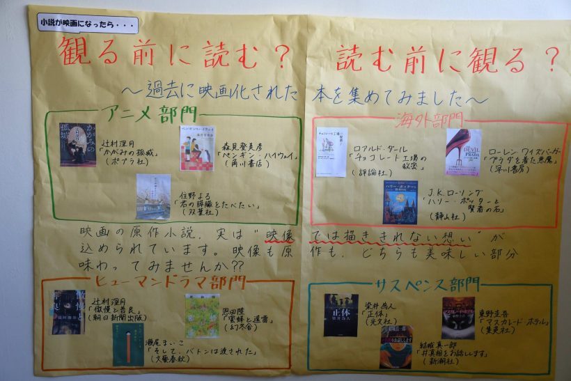 図書室では、11月末までおすすめの本として「映画の原作小説」が紹介されています🎥