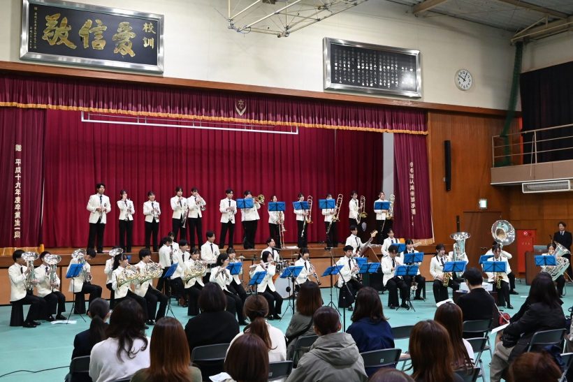 体育館では、オープニングセレモニーとして重点クラブの吹奏楽部”BlueLilies”による演奏をご覧いただきました。