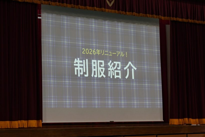 続いて、校長の挨拶の後の学校説明では、2026年度より新しくなる制服を今回初めて披露しました!