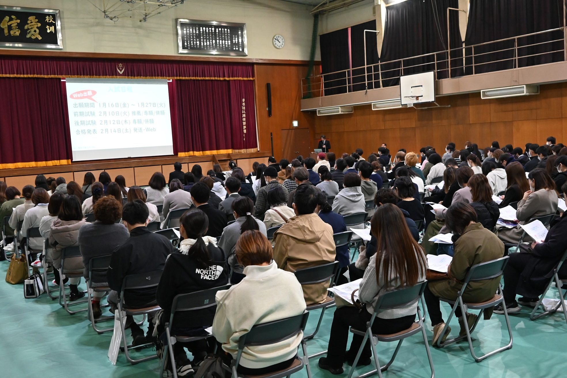 体育館では入試説明と個別相談、本校舎では入試対策講座を実施しました。