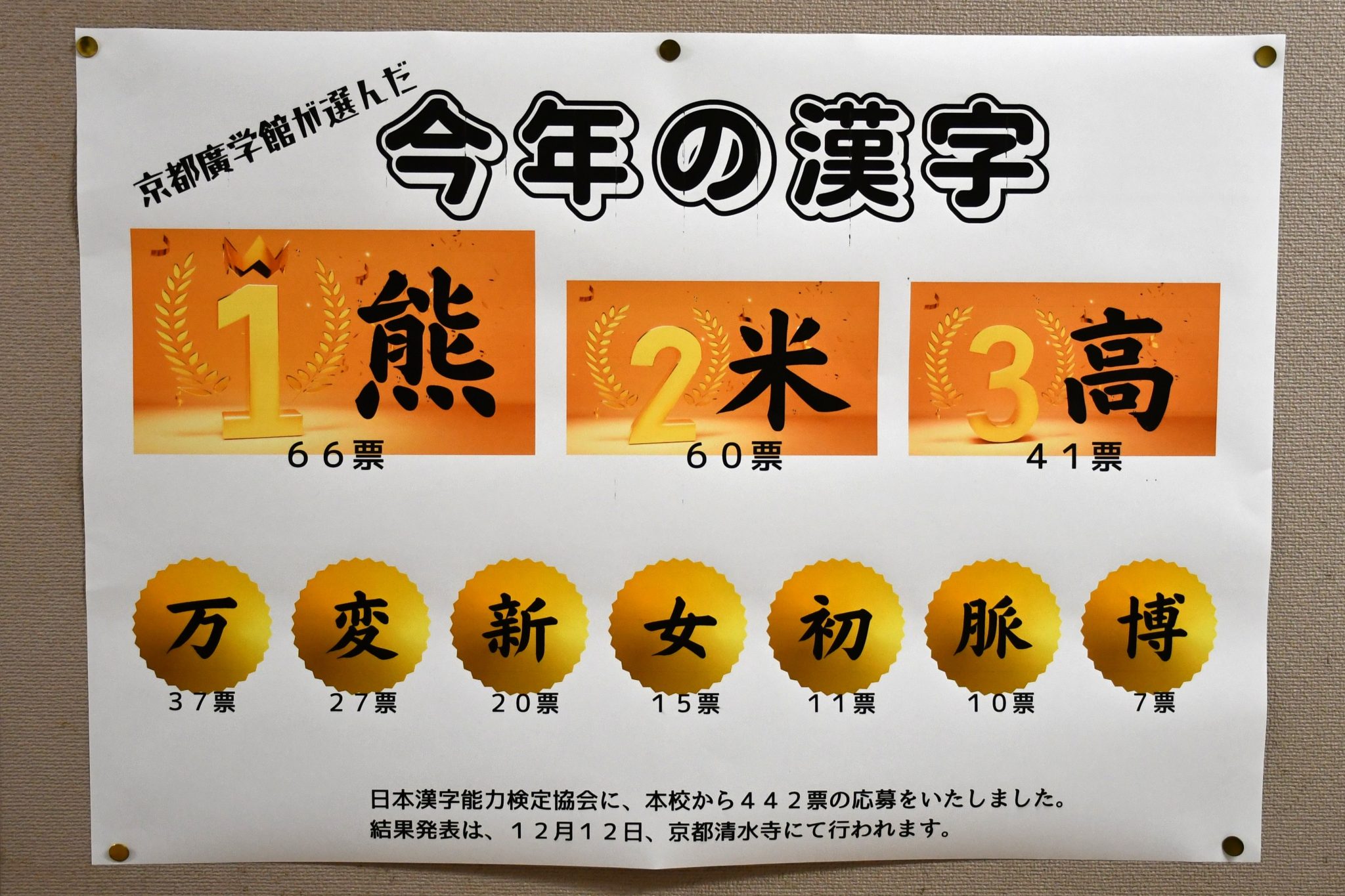 今年度も「今年の漢字」を募集し、校内で集計した結果が掲示されました。