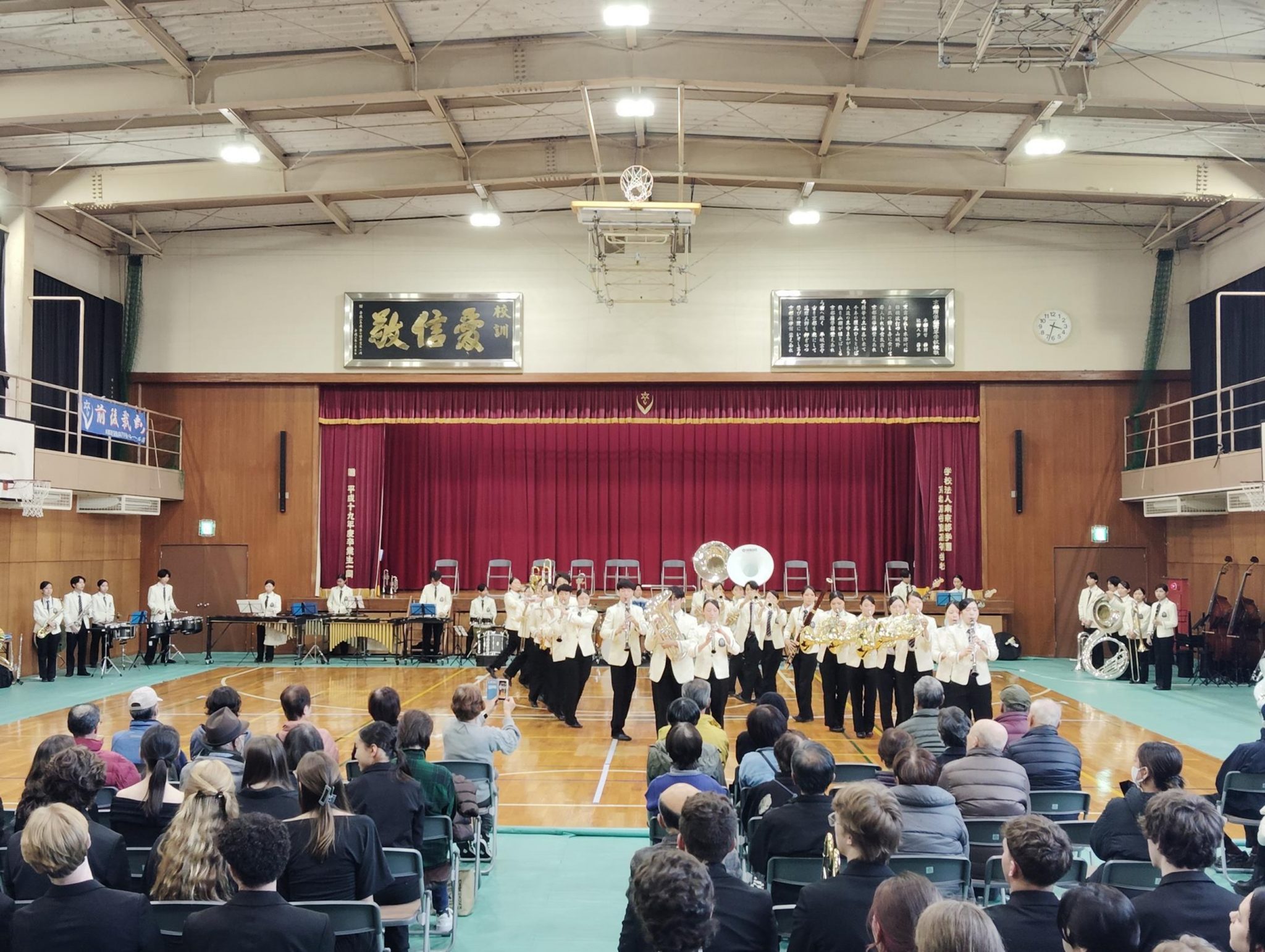 その後、地域の方にもお越しいただき、吹奏楽部 “Blue Lilies”〈重点クラブ〉の演奏とノーザンシドニー吹奏楽団の演奏、そして合同コンサートを行い、会場は大いに盛り上がりました♪ 音楽を通じて、両校の生徒たちがさらに親しくなり、素晴らしい交流の場となりました。