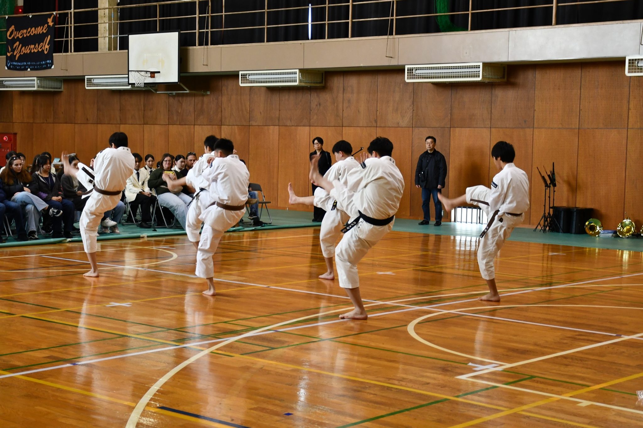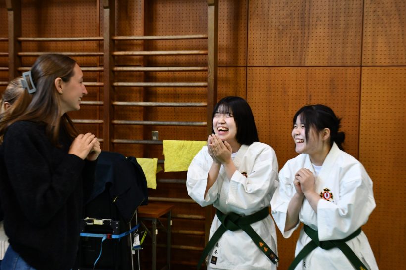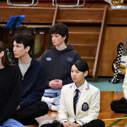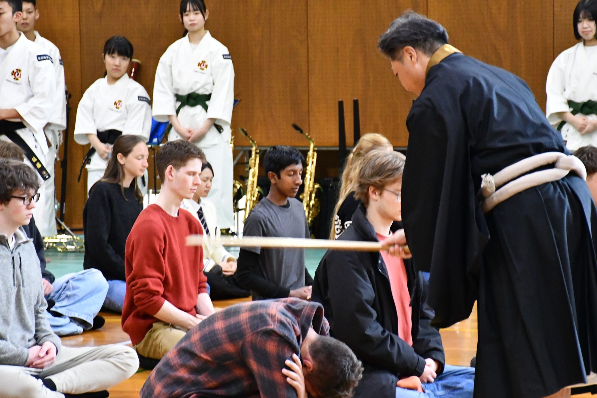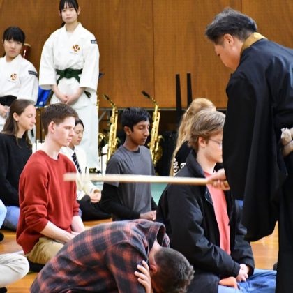 本日は日本文化の紹介として少林寺拳法部〈重点クラブ〉の演武を披露した後、本校の教育の柱の一つである坐禅の体験をしていただきました。