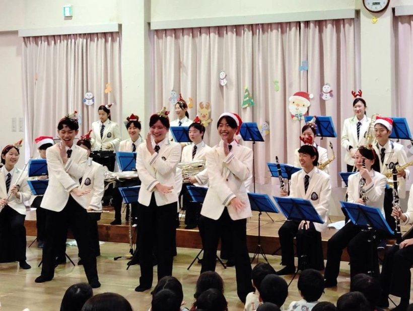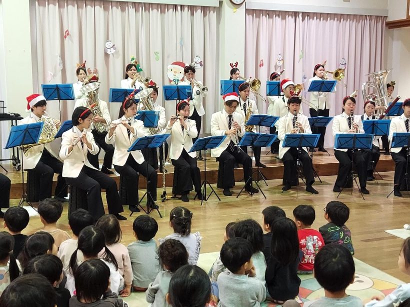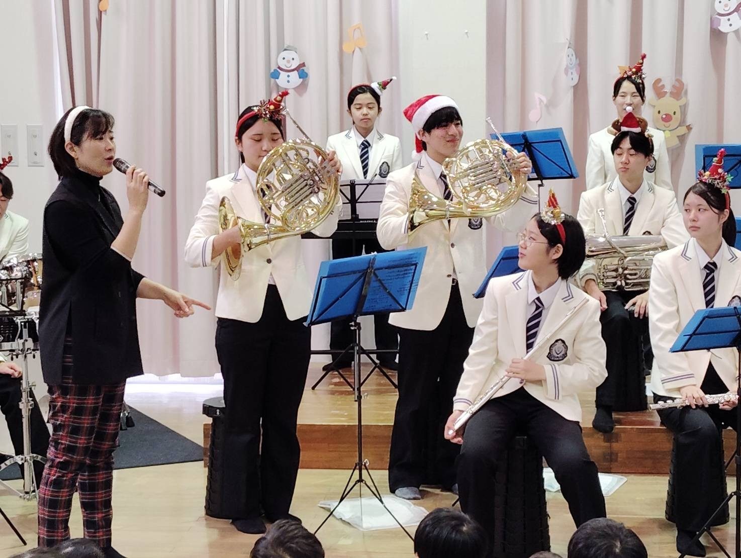 12月24日(水)、吹奏楽部 “Blue Lilies”〈重点クラブ〉が「こまだ保育所」でクリスマスコンサートを開催しました🎷