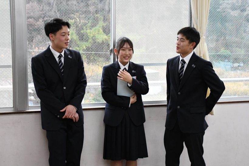 教室での撮影は新制服を着用。在校生からも「可愛い」「ポロシャツが涼しそう」と好評でした😊