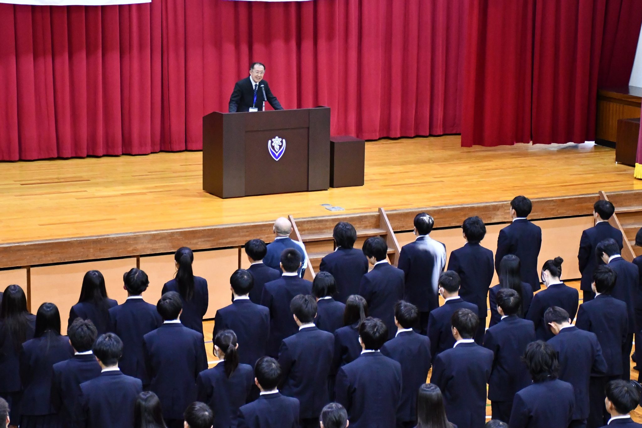 校歌斉唱の後、瀧野校長より式辞をいただきました。