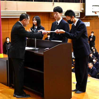 続いて、クラブ活動で優れた成果をおさめた生徒の表彰を行い、全校生徒から温かい拍手が送られました。