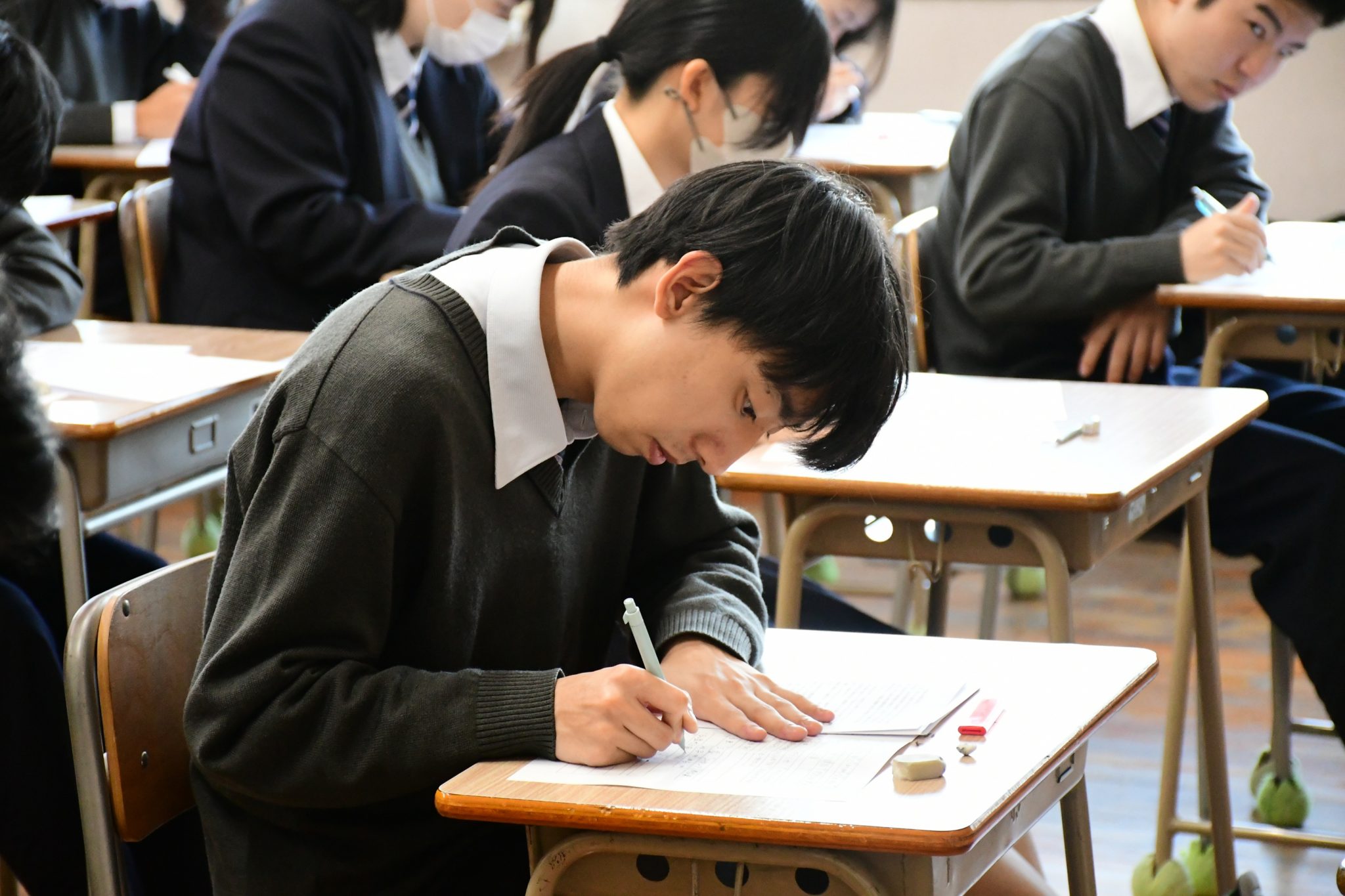3年生が本校で考査を受けるのも、今回が最後となります。これまで積み重ねてきた力は出し切れたでしょうか?