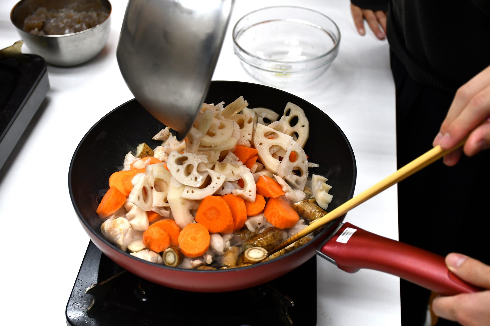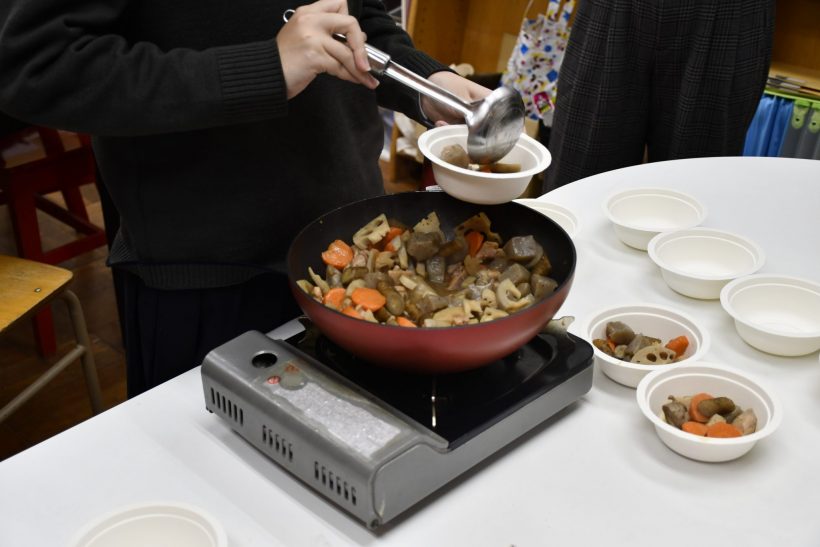 部活動 筑前煮&お吸い物作り:家庭科部 先日、家庭科部の活動にお邪魔しました! この日、家庭科部が挑戦していたのは筑前煮とお吸い物🍽️ 寒い冬にぴったりの体が温まるメニューです✨ 完成した料理は部員みんなで美味しくいただきました😋