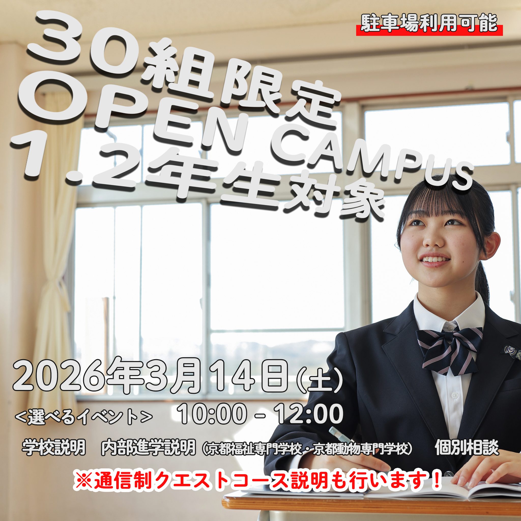 3月14日㈯、中学2年生対象の30組限定オープンキャンパスを開催します。