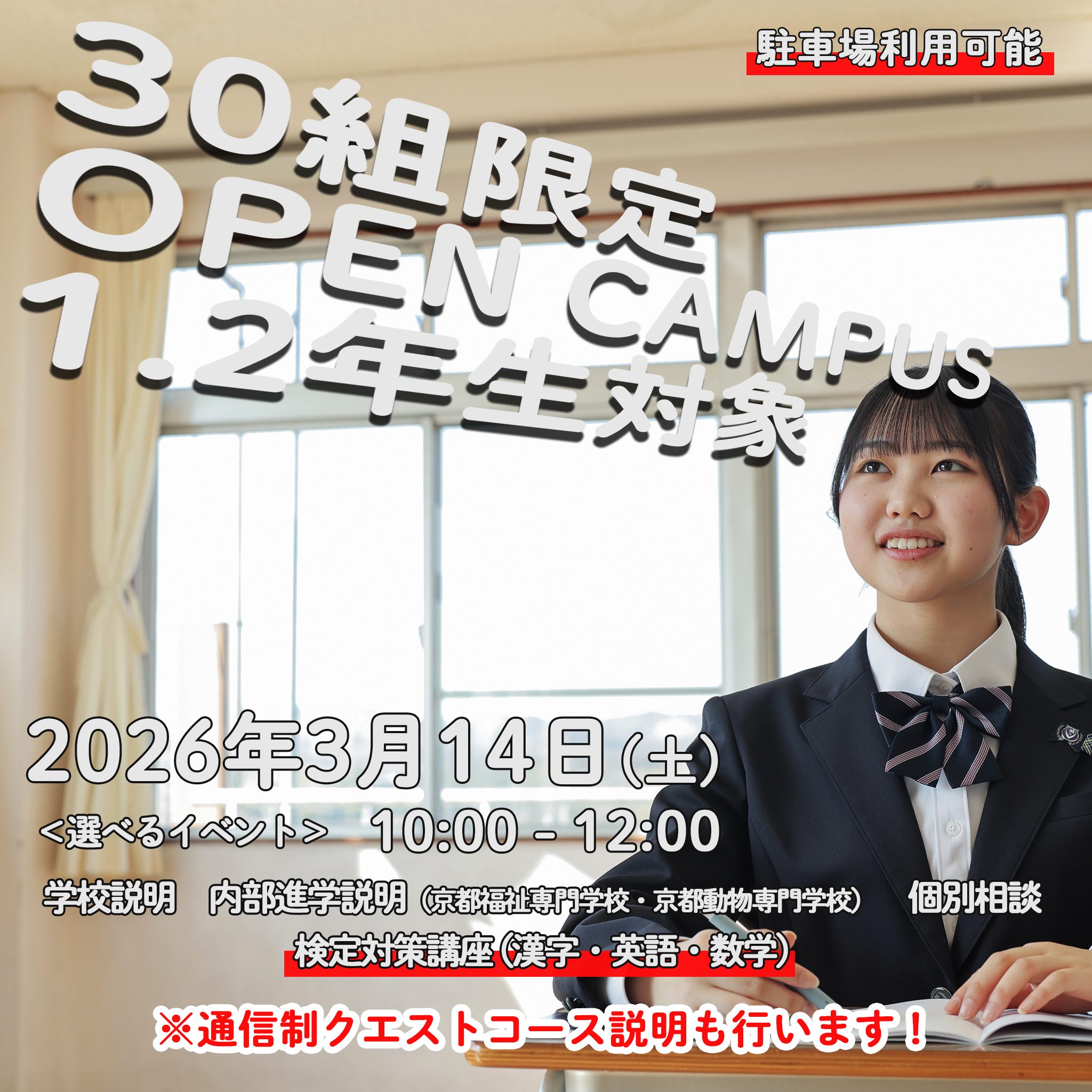 『中学1.2年生対象 30組限定オープンキャンパス』開催!