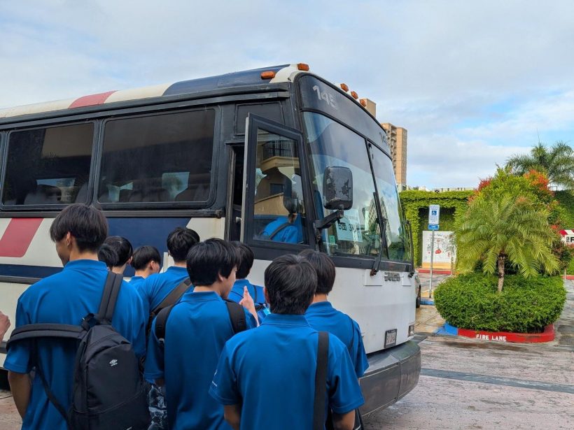 研修は、前団後団ともにジョージワシントン高校での交流やグアム島での平和学習です。スクールカラーのお揃いユニフォームで活動します。