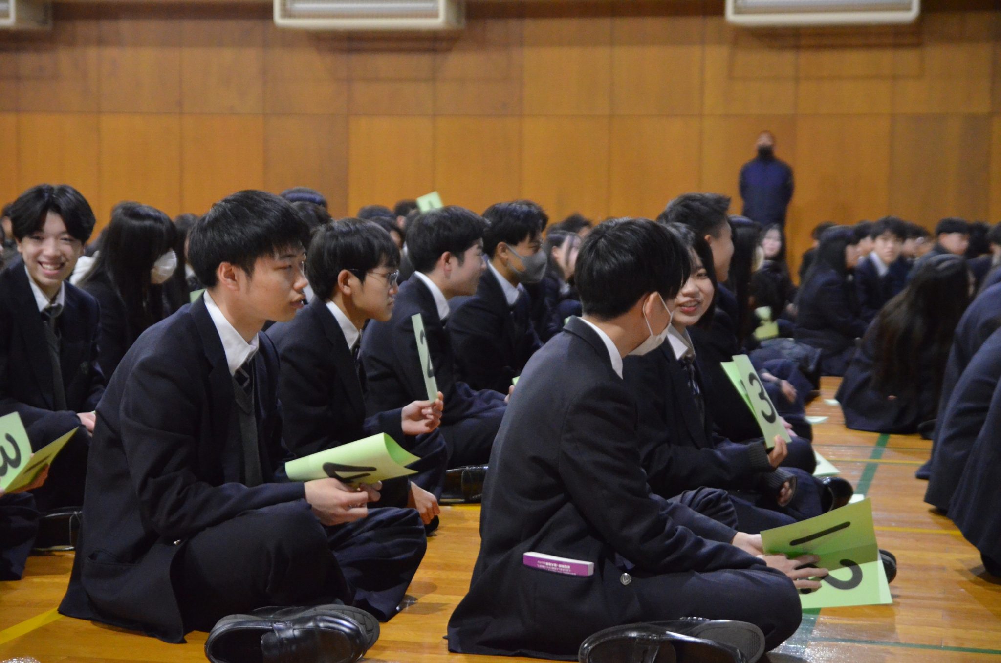 また、途中にはクイズ形式で質問していただく場面もあり、生徒たちは真剣に話を聞いていました。