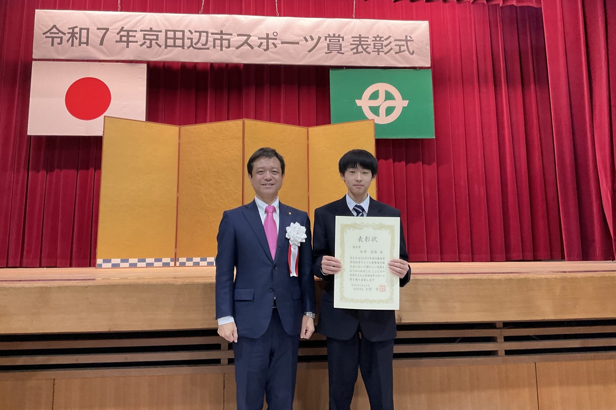 2月28日(土)に京田辺市立中央公民館で「令和7年 京田辺市スポーツ賞 表彰式」が執り行われました。