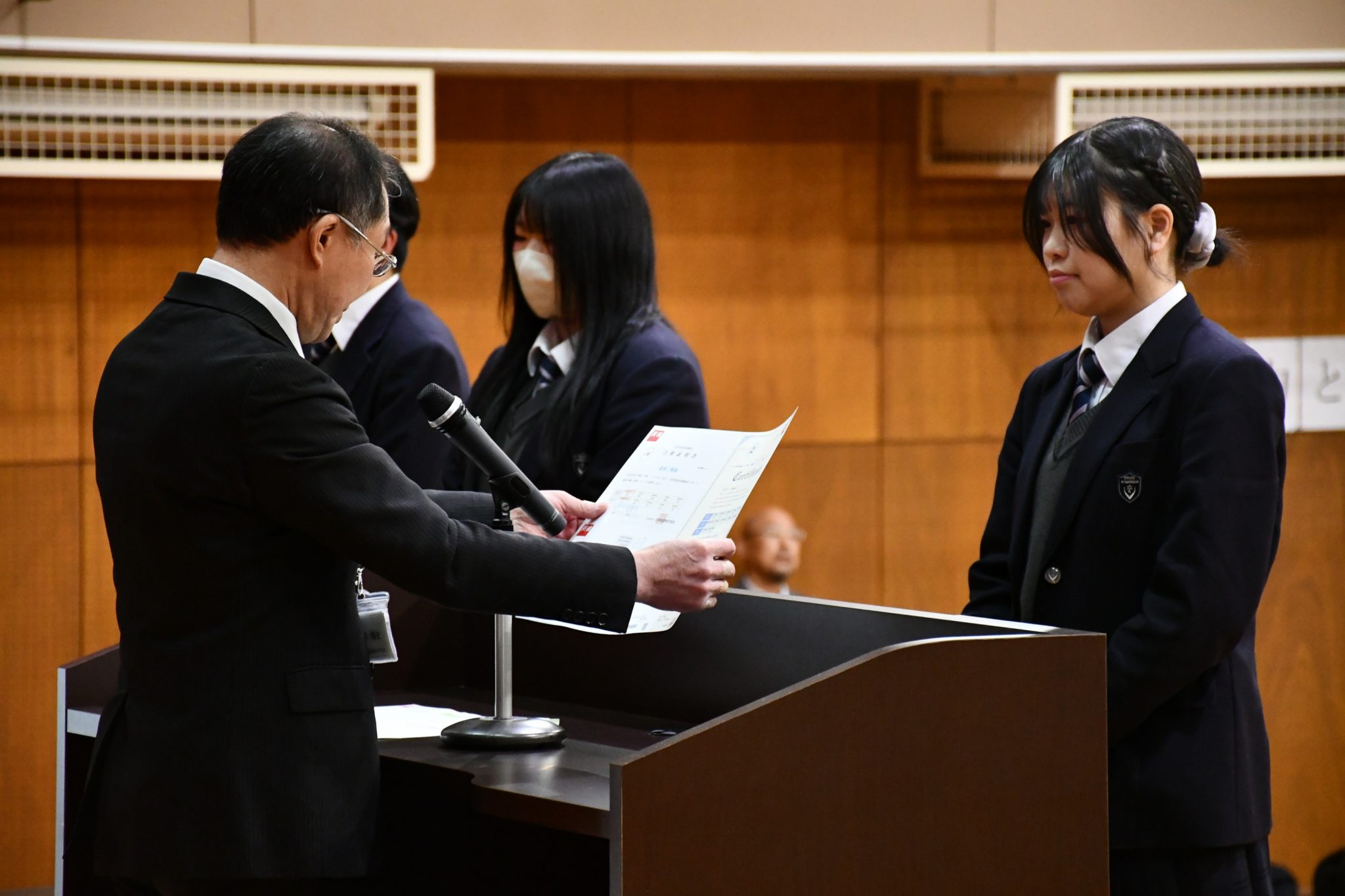修了式後には離任式が行われ、今年度で離任される先生方からの挨拶もありました。