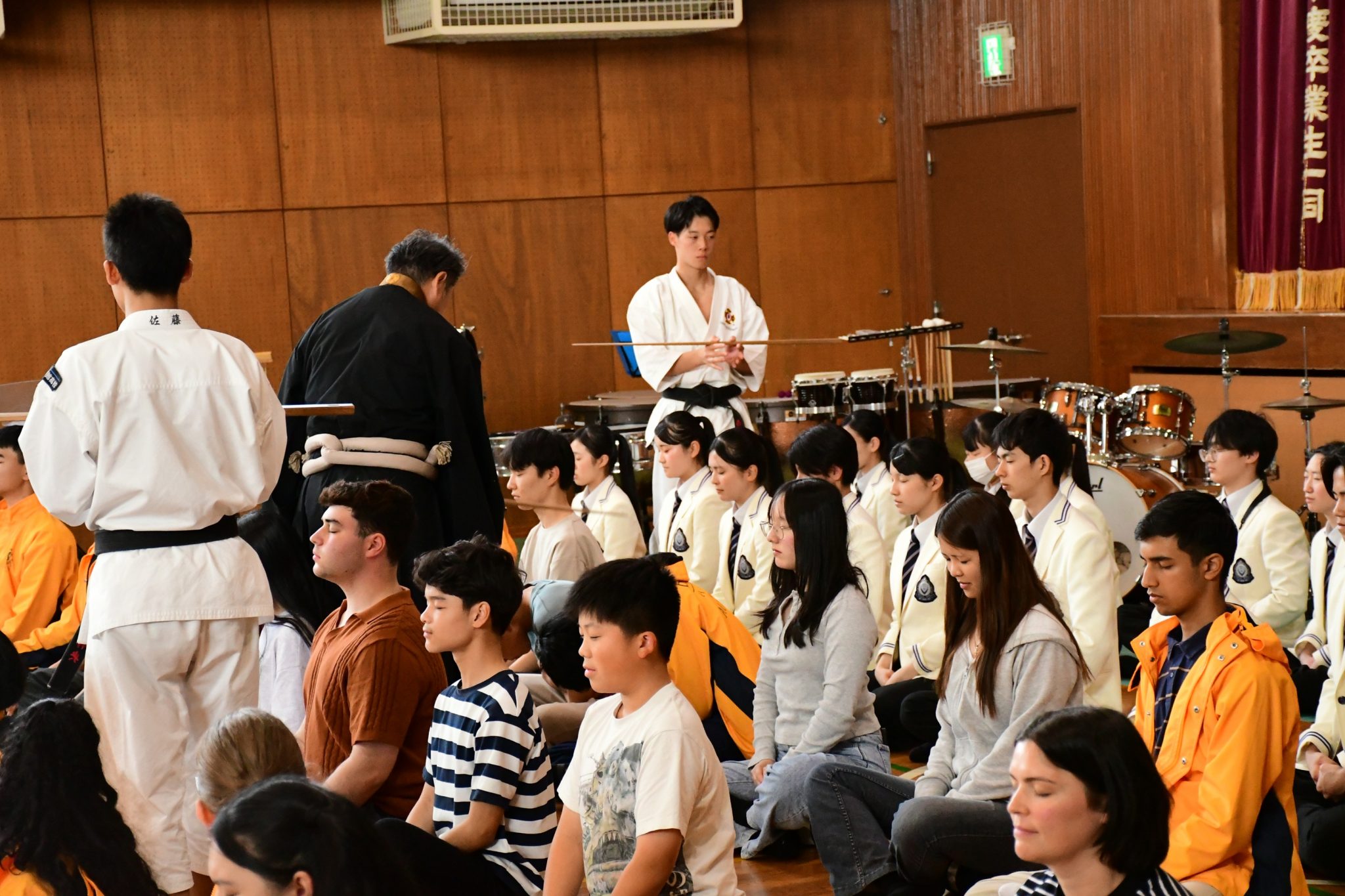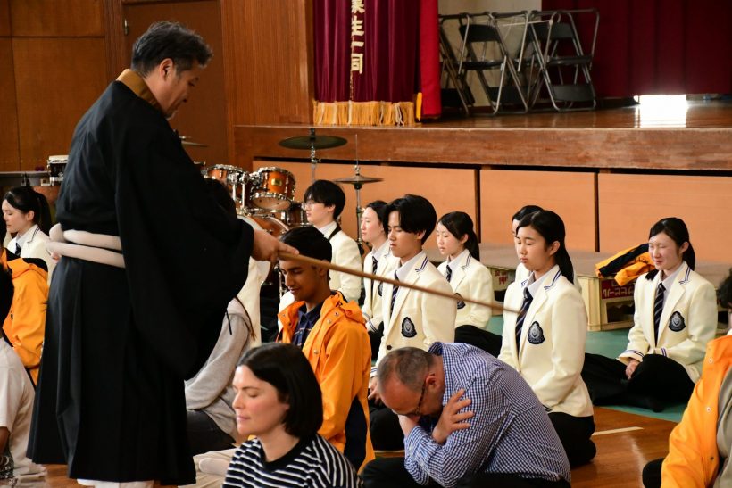 また、本校の教育の柱の一つである「坐禅」に挑戦。静寂の中で自分と向き合う、日本ならではの精神文化を体験していただきました。