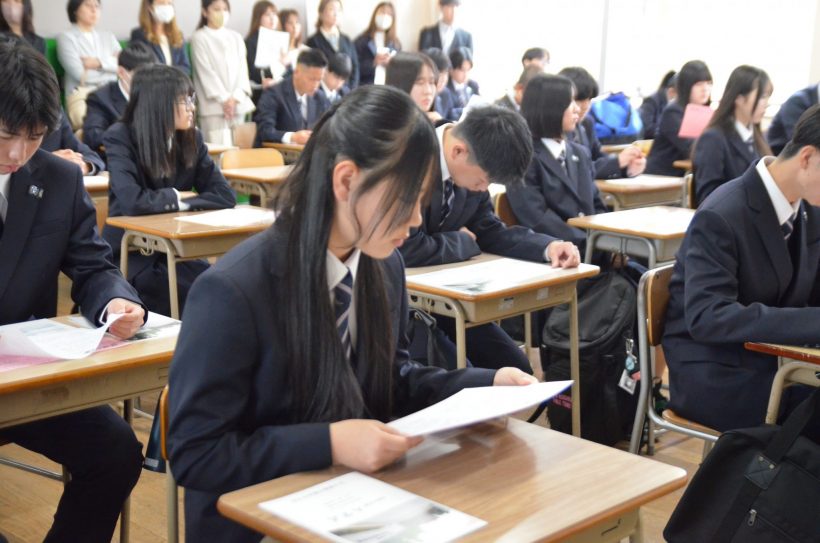 新入生の皆さんは、少し大きめの新しい制服に身を包み、期待と緊張が入り混じった面持ちで登校。その姿は、今日から始まる高校生活への強い決意に満ちていました。