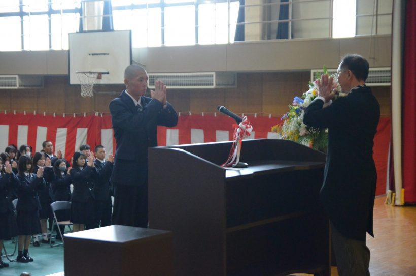 式典の中で特に印象的だったのは、本校が大切にしている「合掌礼」です。