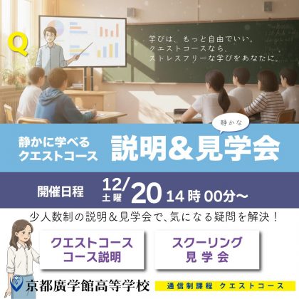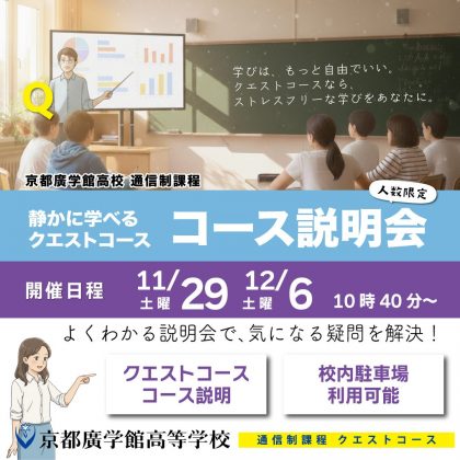 - 2週に1回の学習サポートが可能です。スクーリングの他、オプションの隔週登校選択では対面の学習サポートが可能です。その他オンラインでも質問が可能です。