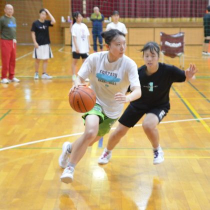 活動場所は、第一体育館です。毎日3時間程度の練習をしています。週末や長期休みには、対外試合や合宿などを通してスキルアップをはかっています。もちろん、OFFやトレーニングだけの日もあります。メリハリをつけてバスケットボールに打ち込むことがでるので、勉強の心配もありません。
