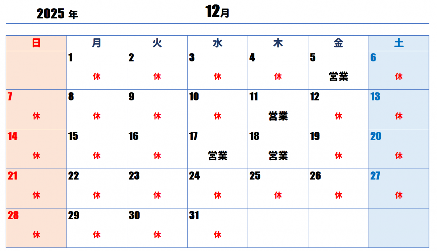 2025年11月 5日時点 営業日は予告なく変更する場合がございます。ご了承ください。