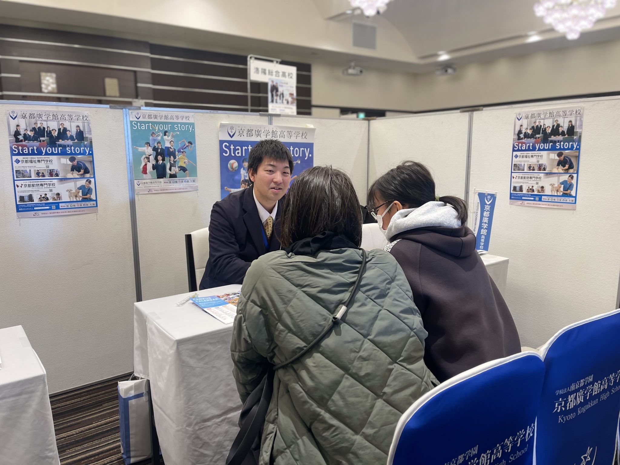 また、内部進学説明では、グループ校の京都福祉専門学校・京都動物専門学校の学校紹介と京都廣学館高等学校からの両専門学校へ進学する際の内部進学制度について説明しました。介護福祉士やトリマー、愛玩動物看護師に興味のある中学生の皆さんは、ぜひ一度内部進学説明にご参加ください!