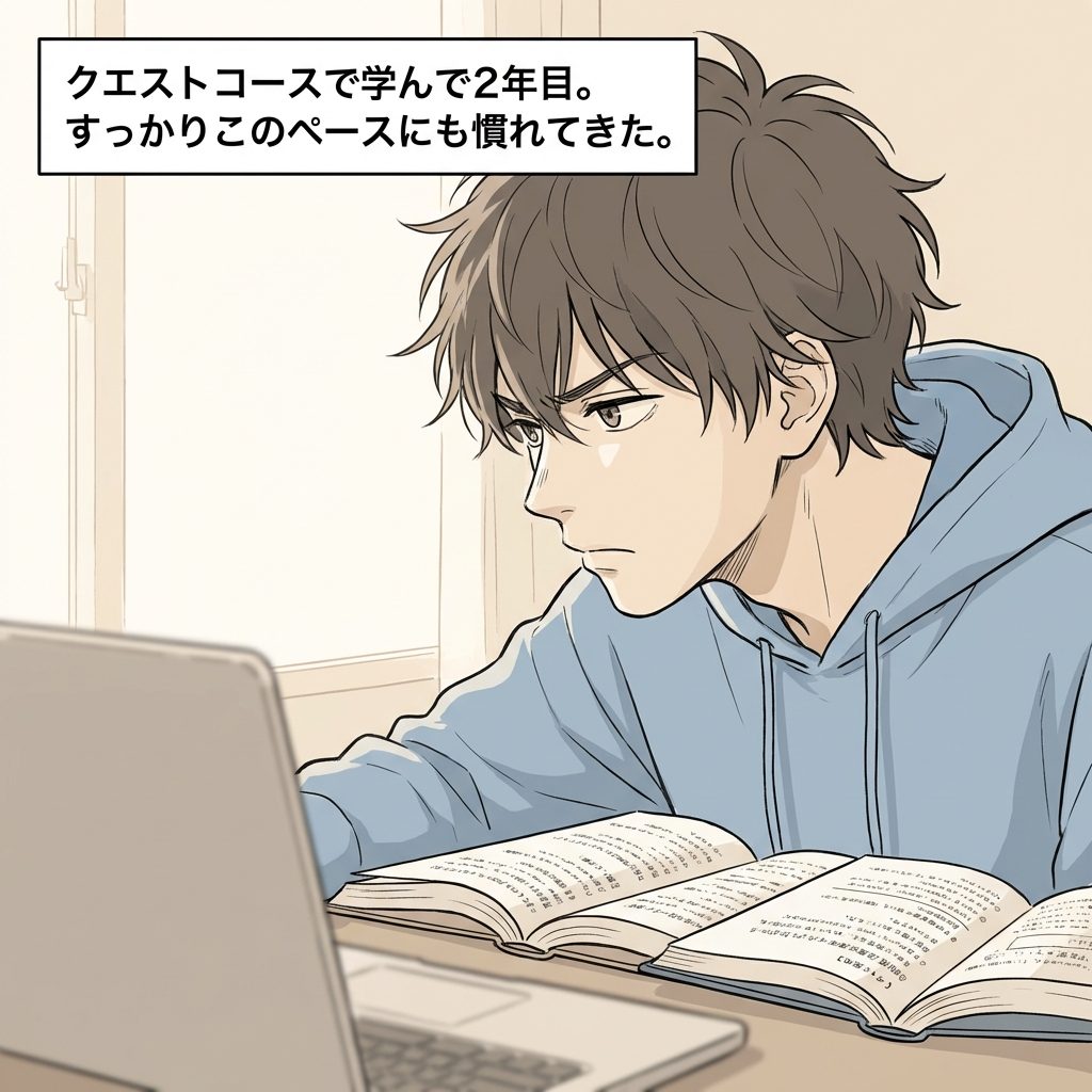 2. 「自分のペース」が当たり前になる安心感「クエストコースで学んで2年目。すっかりこのペースにも慣れてきた」