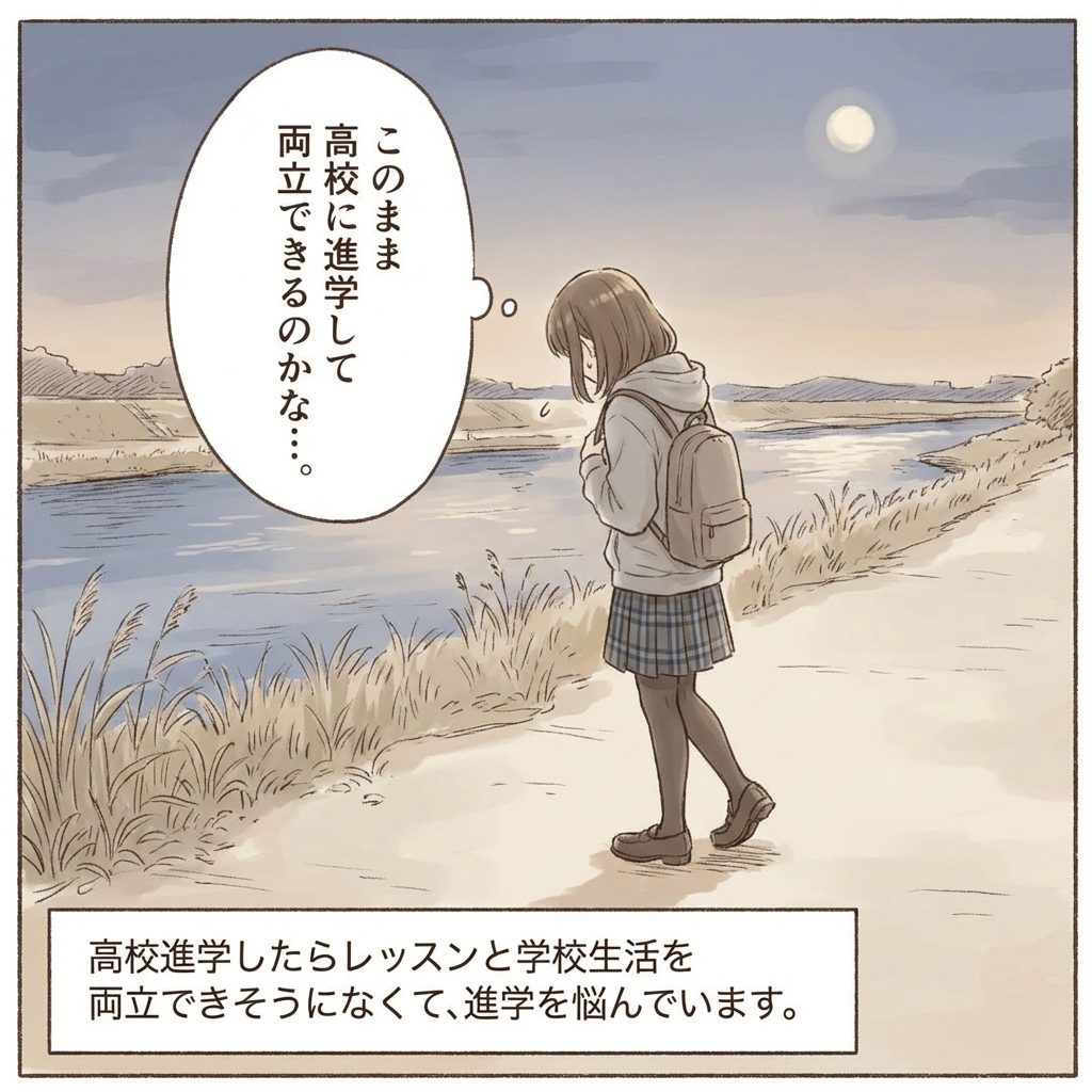 毎日、何かに一生懸命取り組んでいると、ふと不安になることがあります。「このまま高校に進学したら、練習する時間がなくなるんじゃないか?」「勉強と両立できるかな?」 悩むのは、あなたが自分の夢に対して本気だから。決して、わがままではありません 。