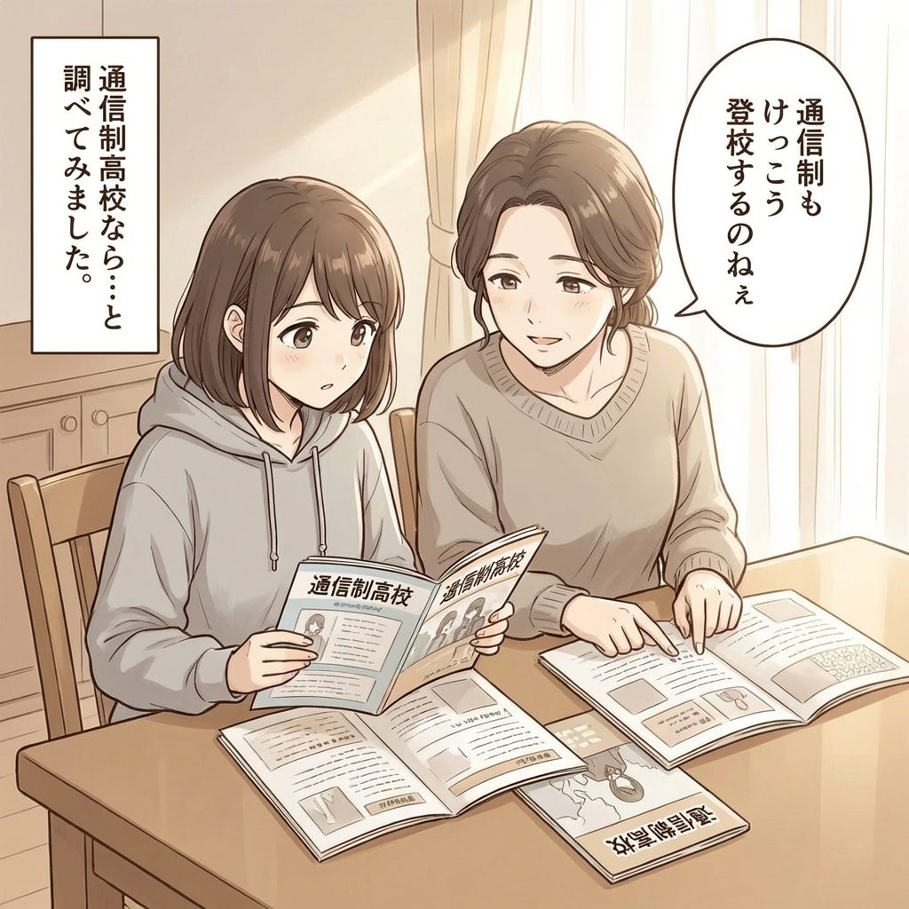 「高校進学をあきらめるしかないのかな…」と立ち止まりそうになったら、一度視野を広げてみてください。最近では、自分の時間を自由にデザインできる「通信制高校」を前向きに選ぶ人が増えています 。 お母さんと一緒に資料を調べてみると、一口に通信制といっても、週に数回通う学校から、ほとんど通わなくていい学校まで、スタイルはさまざまです 。