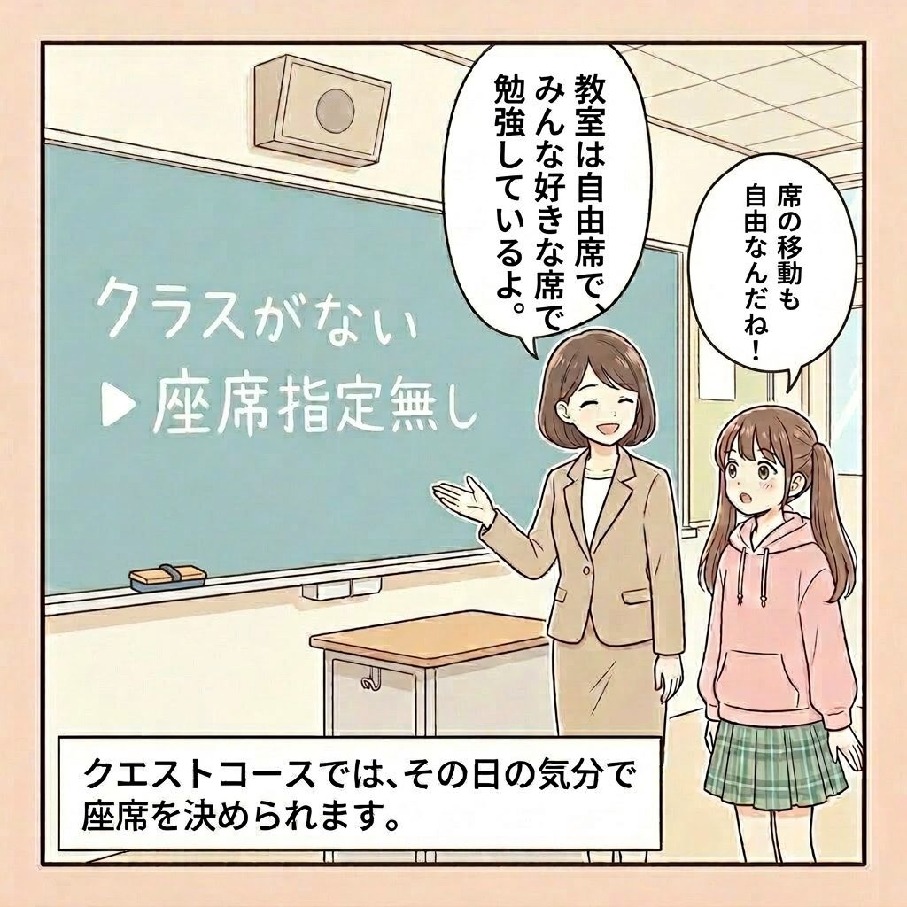 クエストコースでは、一般的な「学校=クラスで過ごす」という常識をなくしました。